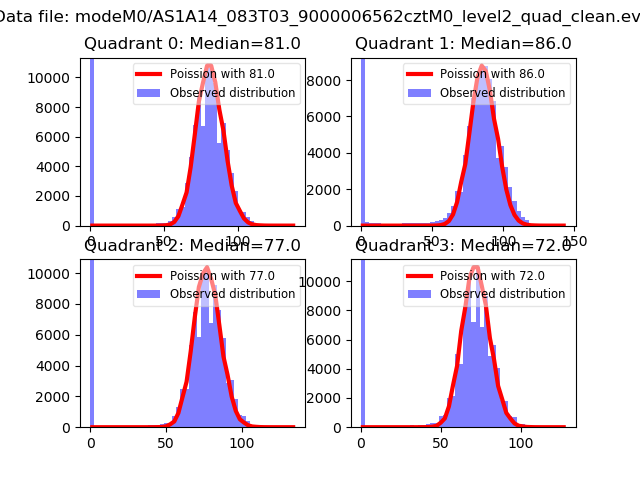 Red curve is a Poisson curve with rate = median count rate of data. |