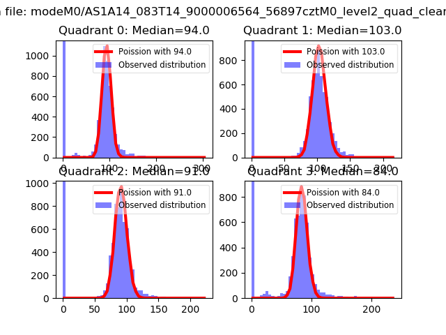 Red curve is a Poisson curve with rate = median count rate of data. |