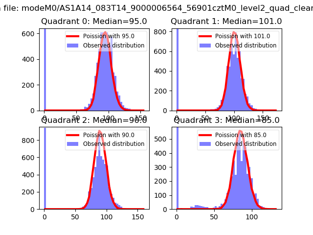 Red curve is a Poisson curve with rate = median count rate of data. |