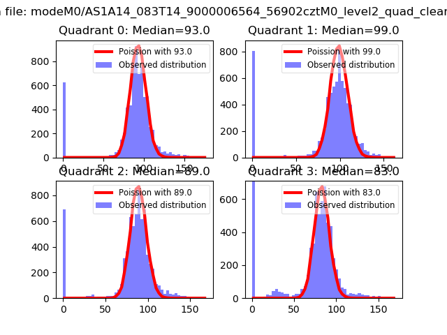 Red curve is a Poisson curve with rate = median count rate of data. |