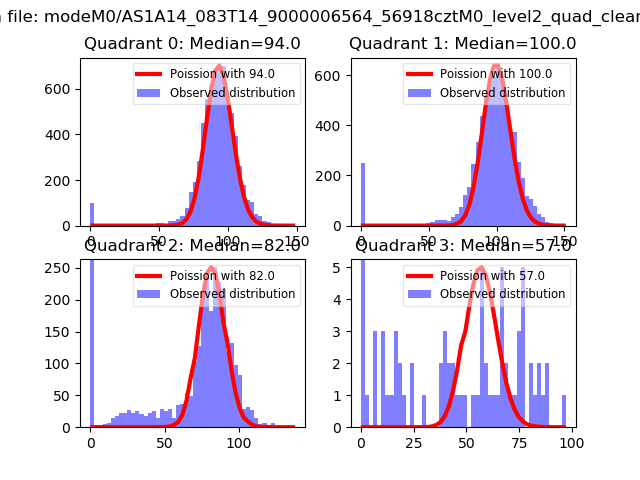 Red curve is a Poisson curve with rate = median count rate of data. |