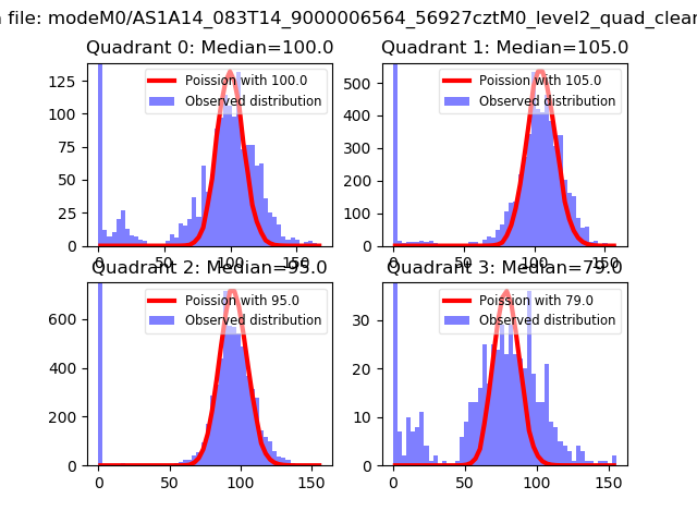 Red curve is a Poisson curve with rate = median count rate of data. |