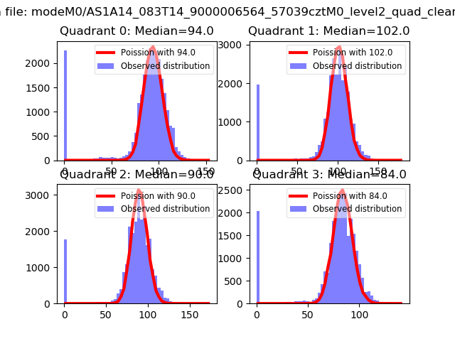 Red curve is a Poisson curve with rate = median count rate of data. |