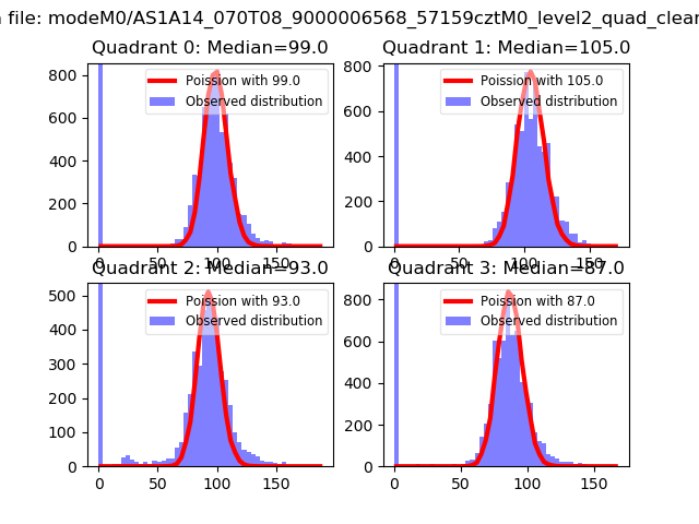 Red curve is a Poisson curve with rate = median count rate of data. |