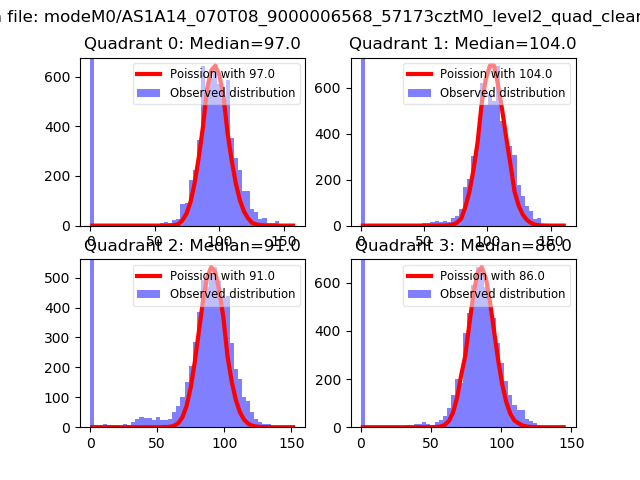Red curve is a Poisson curve with rate = median count rate of data. |