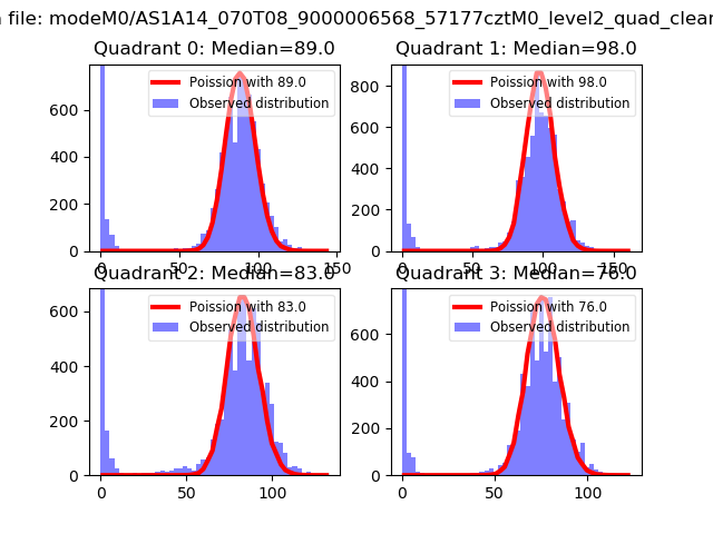 Red curve is a Poisson curve with rate = median count rate of data. |